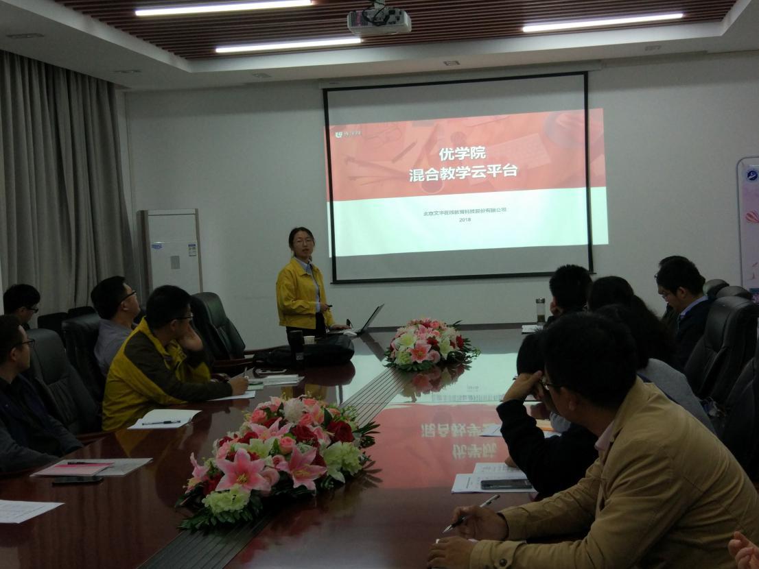 文华教育科技有限公司的王然讲师和钱龙讲师分别从课程建设、在线教学以及综合考核三个方面详细介绍了“优学院混合教学云平台”及“雷课堂交互式课堂教学管理平台”的具体操作与应用。