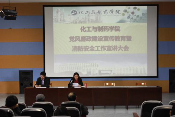 在文科楼313举行了党风廉政建设宣传教育暨消防安全工作宣讲大会,会议由学院党委副书记田勇主持,全院教职工参加了大会。