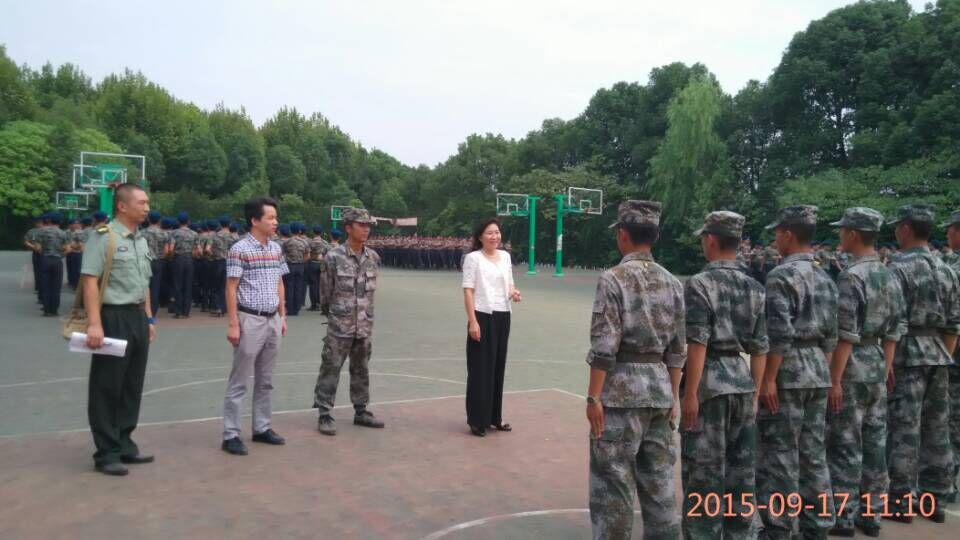 党委书记王雪梅、党委副书记王火利一行,到2015级新生军训训练场看望了教官。