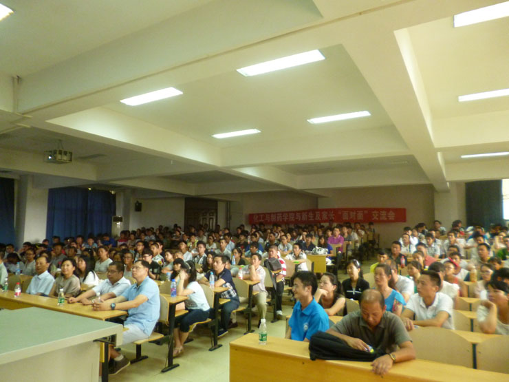 与新生家长“面对面”交流会在流芳校区一教学楼1119教室举行,党委书记王雪梅、院长喻发全、院党委副书记夏志敏、副院长郭嘉、副院长田琦峰、省重点实验室副主任汪锋以及学院2014级辅导员、班主任参加交流会,与学院250余名新生及家长展开了面对面交流。
