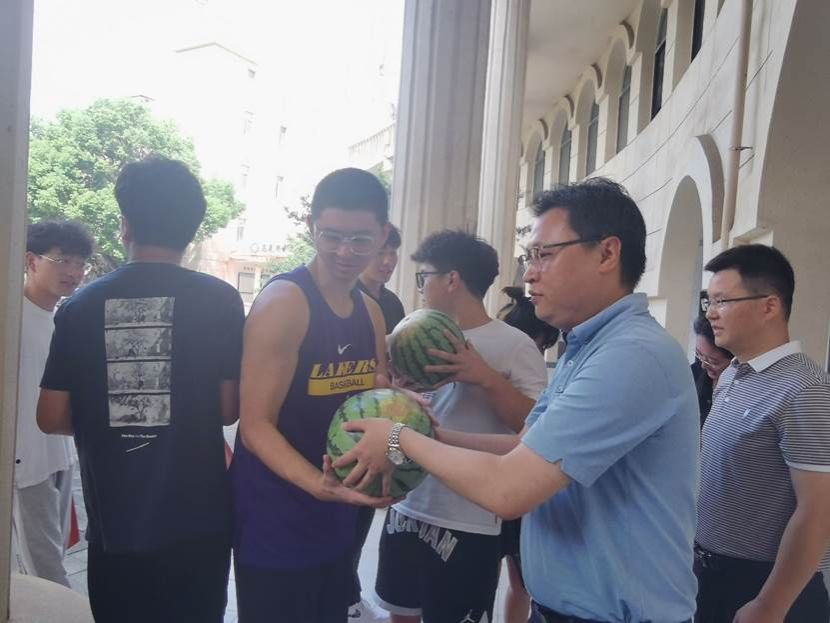 党委书记汪铁林,院长易群,党委副书记周丹,副院长龙思会、金放、古双喜,院长助理刘根炎、吴华东,院工会主席谌伟民,辅导员梅军、冯婧、蓝传祺开展暑期“盛夏送清凉”活动,慰问暑期坚守岗位、开展科研、备赛、考研的师生。