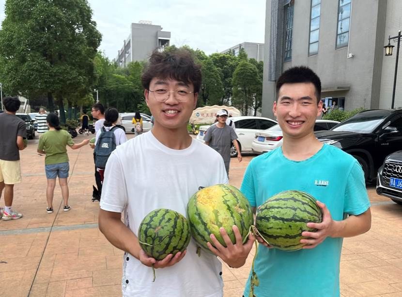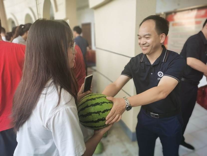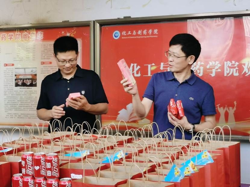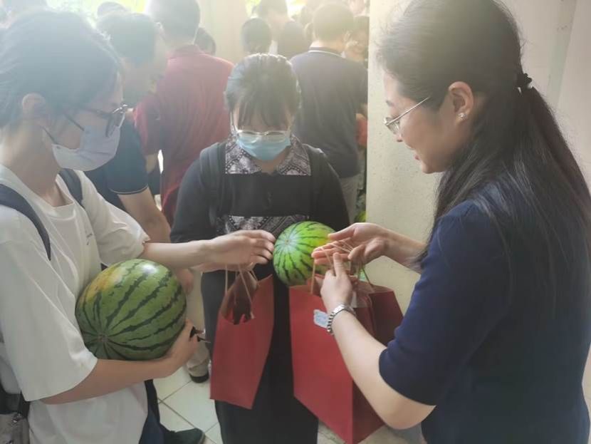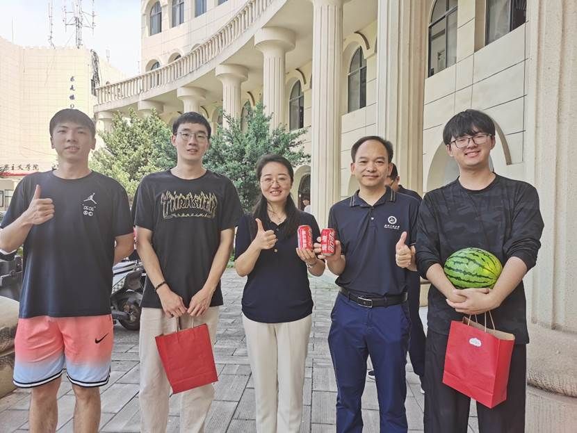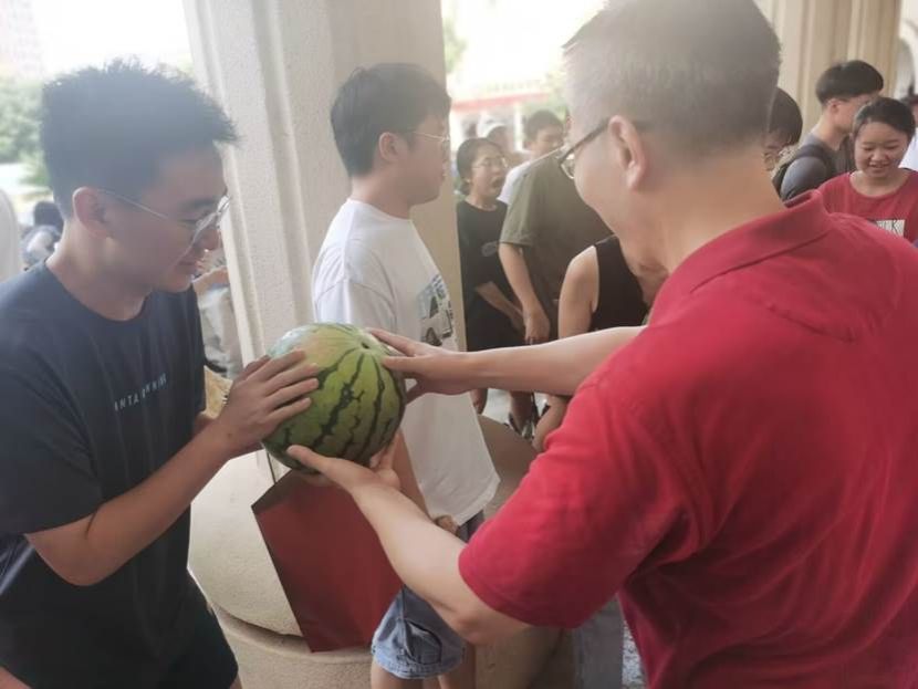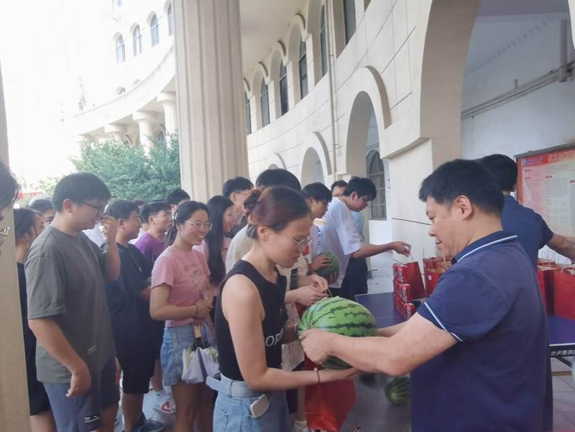 “在骄阳似火的季节,学院领导老师主动为学生着想,不仅给我们送来了酷暑必备的西瓜与饮料,还精心准备了加油大礼包,让我感受到了老师们的热情和关爱,给我们备战考研注入了全新动力!”2020级化卓班学生卢骏宇和2020级智能化工02班樊羽林真诚地说。