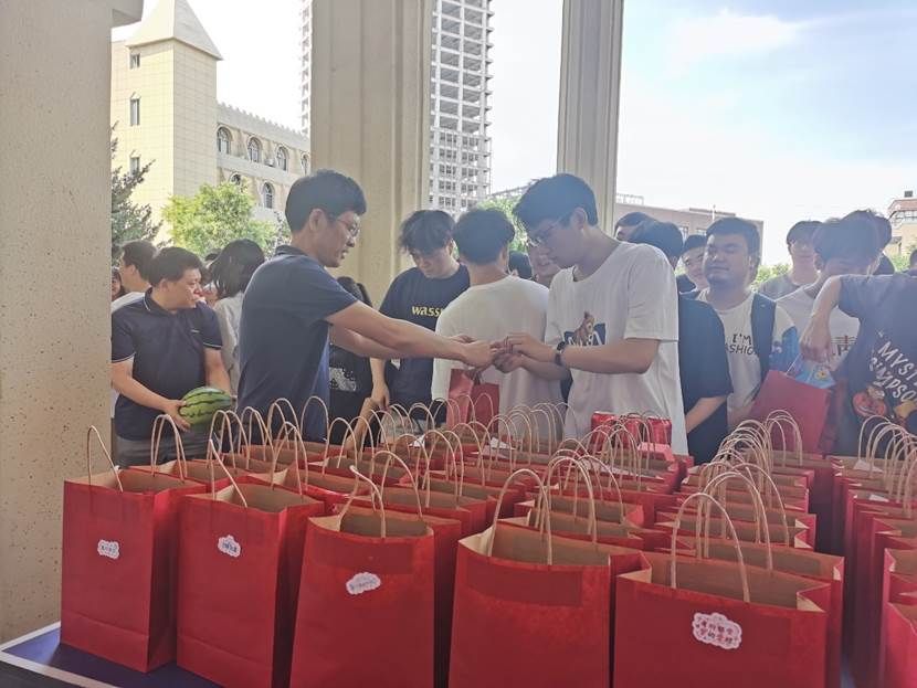 学院领导为学生们发放了学院精心准备的加油大礼包,每一件物品都寄托着学院对考研学子深切的关怀与殷切的期望。希望同学们发扬奋勇拼搏的精神,在漫漫征途中坚持奋斗,最终取得优异成绩。
