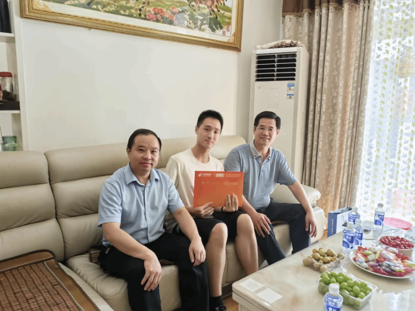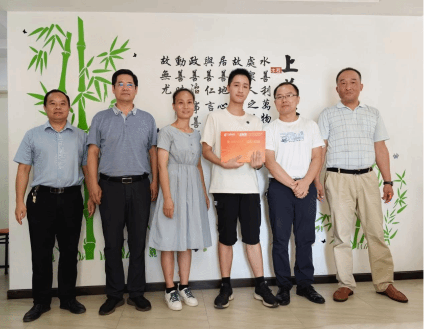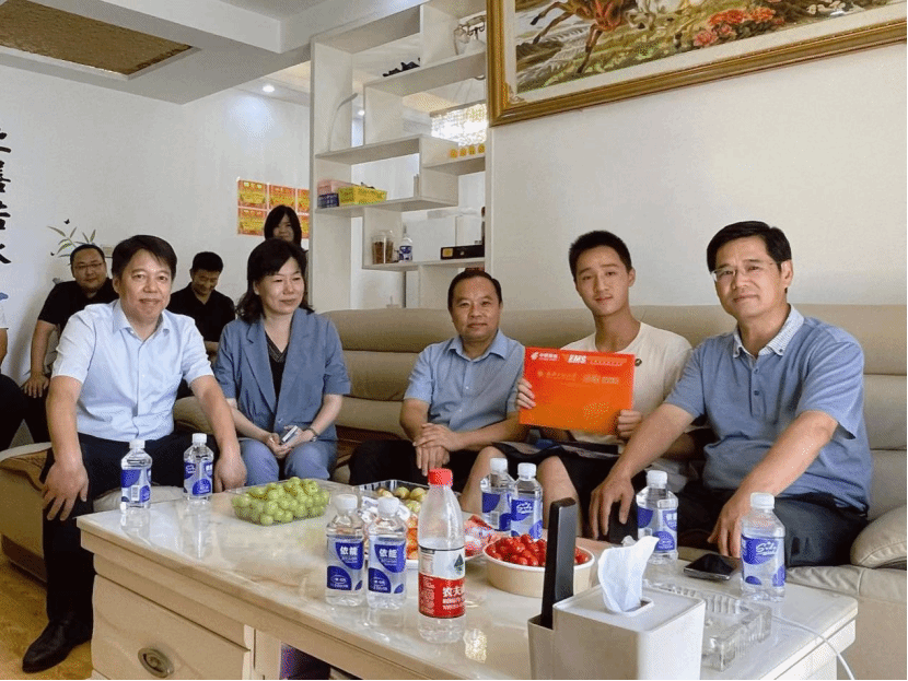 本网讯(通讯员 周丹)7月27日下午,校党委副书记、校长王存文赴黄陂,将学校2023年首封普通类本科生录取通知书亲手送交给新生张典同学,并为学生送上了学校大礼包。张典同学以594分被录取为电影天堂