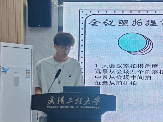 宣传部负责人张伟根据学院微信公众号中的精选照片,分别向同学们介绍了如何拍取会议照片、活动照片及如何在拍摄过程中抓拍关键瞬间,图文并茂,讲解清晰,为学生们进一步提高拍照技能提供了有力指导。