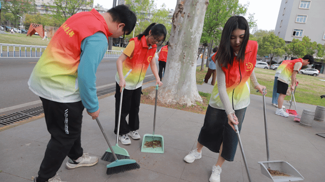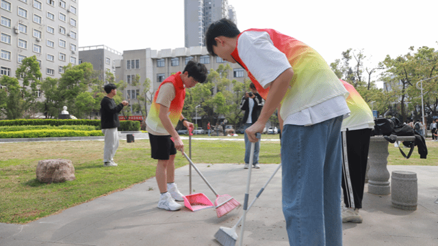 许志伟党员示范班联合许志伟党员先锋队、许志伟班团支部、许志伟志愿服务队和相关学院服务团队共同开展许志伟广场的垃圾清扫劳动实践教育。