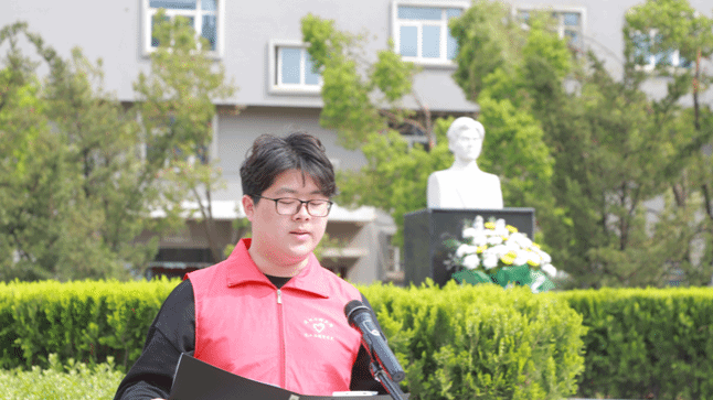 学生代表宋澜馨分享自己与许志伟志愿服务队的故事,倡议大家从前辈先烈的事迹中补足精神之钙,从党的奋斗征程中铸牢思想之基,传承许志伟精神,以实际行动为建设中国式现代化贡献青春力量。