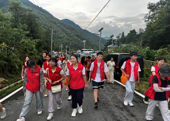 同时麦市镇团委干部刘浩为实践团成员详细介绍了今天志愿服务的黄龙山和天岳关。黄龙山是湘鄂赣三省的天然屏障和自然分水岭,横跨东西的黄龙山,是修江、汩罗江、陆水三河的发源地,自古就有“一山观两湖,一山藏二教,一水发三江”之说,是天然的避暑胜地和人文旅游胜地。