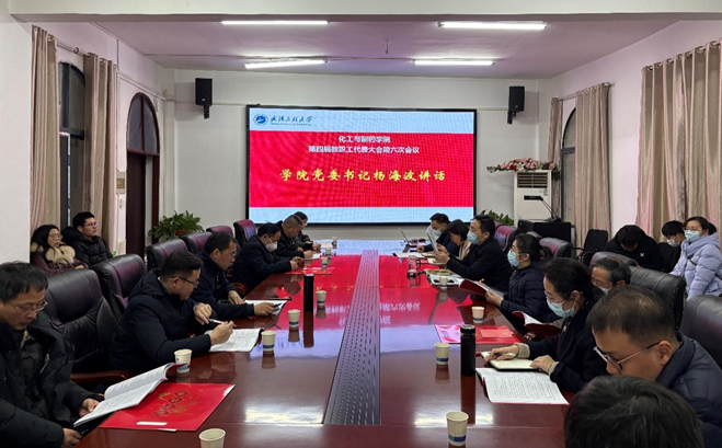 在大化工楼610多功能报告厅隆重召开第四届教职工代表大会第六次会议。校工会常务副主席鲁晓君、学院领导班子全体成员出席会议,学院第四届教职工代表、特邀代表和列席代表共聚一堂,共议学院发展大计。会议由学院党委副书记周丹主持。