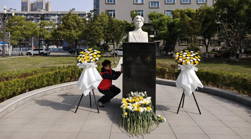 在场师生依次向许志伟雕像献花,表达对许志伟的深切缅怀和崇高敬意。
