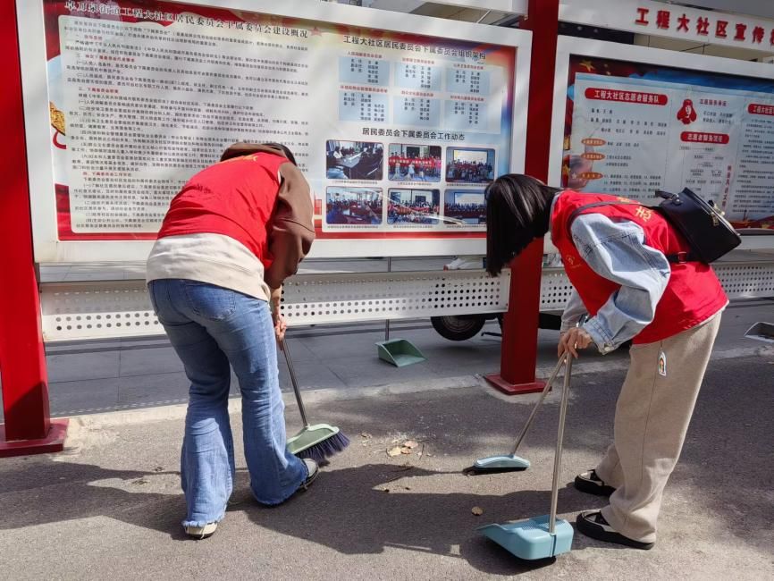 许志伟党员示范班、许志伟党支部、许志伟党员先锋队、许志伟班团支部、许志伟志愿服务队联合相关学院服务团队共同开展许志伟广场和工大社区清扫劳动实践活动。