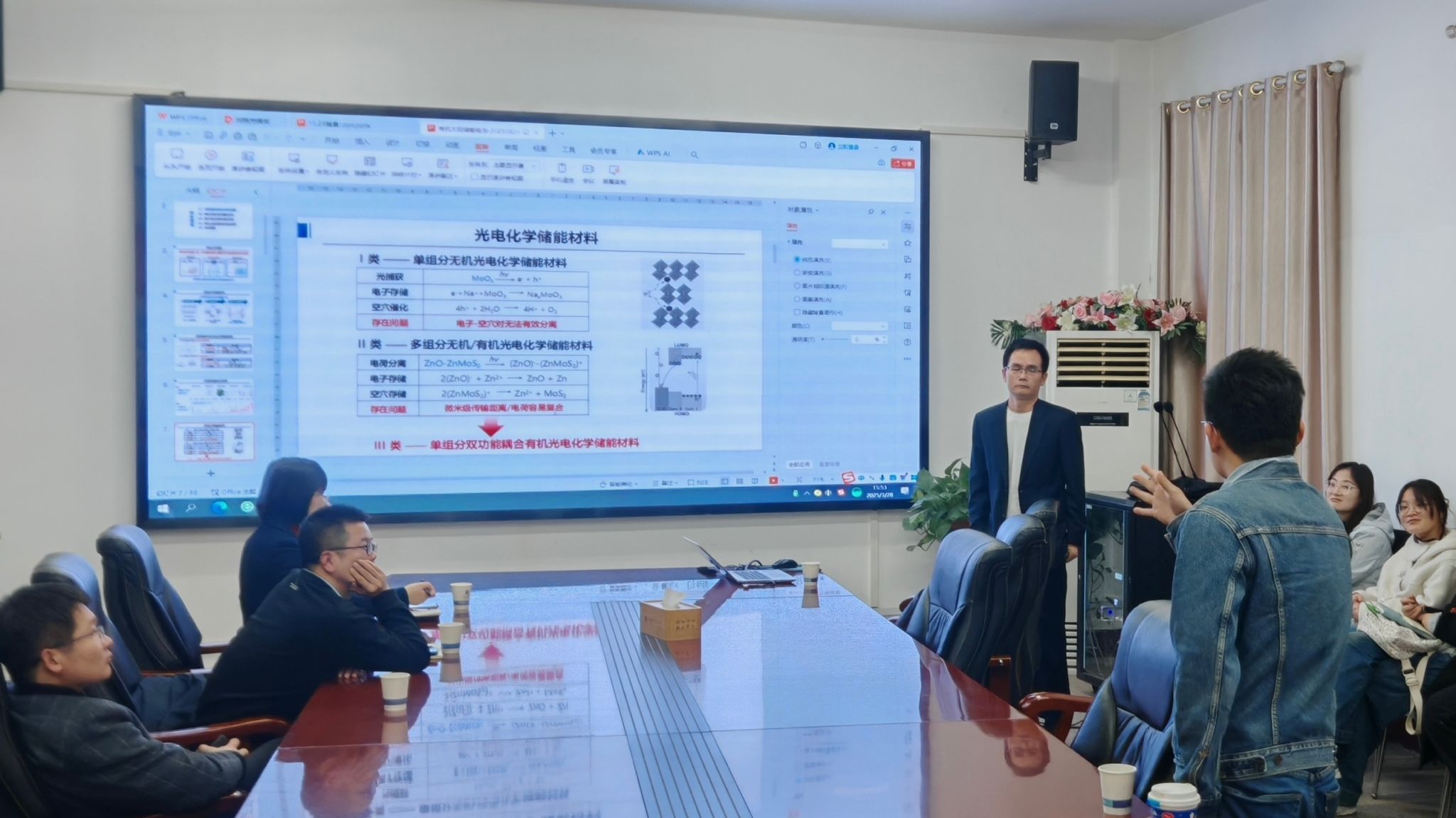 报告结束后,王要兵教授与师生进行了互动交流,耐心回答了大家提出的问题,分享了团队的研究经验。此次报告让师生们深入了解了有机太阳能储能电池,激发了师生对有机太阳能储能电池的浓厚兴趣和创新思维。