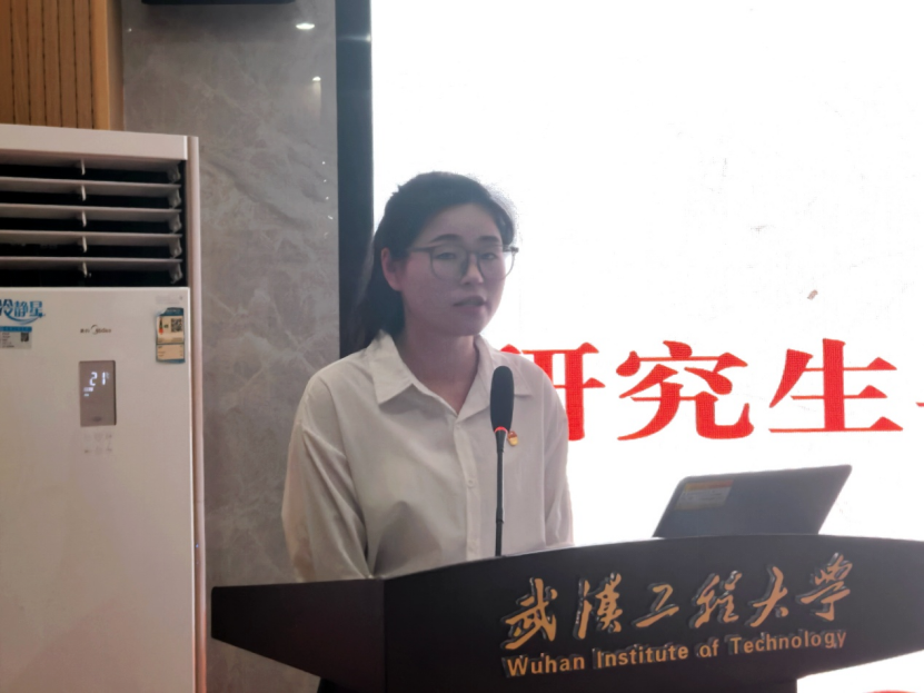 研究生毕业生党员代表张喜红上台发言,她分享了自己在研究生阶段的成长与收获。她号召广大毕业生党员,不仅要努力学习专业知识,更要有一颗为人民服务的心,以实际行动践行党的宗旨。