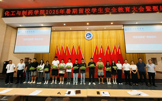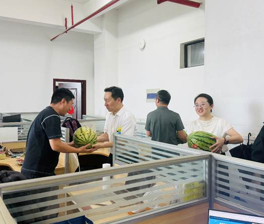 同时,学院开展“盛夏送清凉”师生慰问活动。参会领导与教师代表为1000余名留校学生送上清甜解暑的西瓜。自2021年起,学院连续五年以西瓜传递“化药浪漫”,为奋战在科研、考研一线的学子送上夏日关怀。
