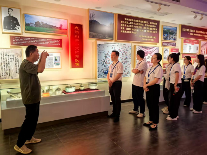 党委书记杨海波、副书记周丹、教授龙秉文、创新创业中心主任李辉、辅导员翟森稳以及本硕学生代表一行13人组成的暑期社会实践团,赴钟祥市大洪山革命历史纪念馆开展“赓续红色血脉,汲取奋进力量”主题实践活动。