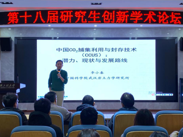 李小春从中国CO2捕集利用与封存技术(CCUS)为出发点,以CO2捕集利用与封存技术的潜力、现状与发展路线三个要点引出报告主题,并从四个部分着重介绍了CO2捕集利用与封存技术现状与未来。他指出,CCUS是未来我国减少CO2排放、保障能源安全,构建生态文明和实现可持续发展的重要手段。近年来,CCUS技术本身及其发展环境都发生了显著变化,新形势下要求对 CCUS技术重新定位,从而促进生态文明建设和可持续发展战略的实施。同时介绍了我国CCUS发展目标,以及在发展过程中可能面临的风险与挑战。提问环节,李教授针对在场师生的提问进行了细致解答。