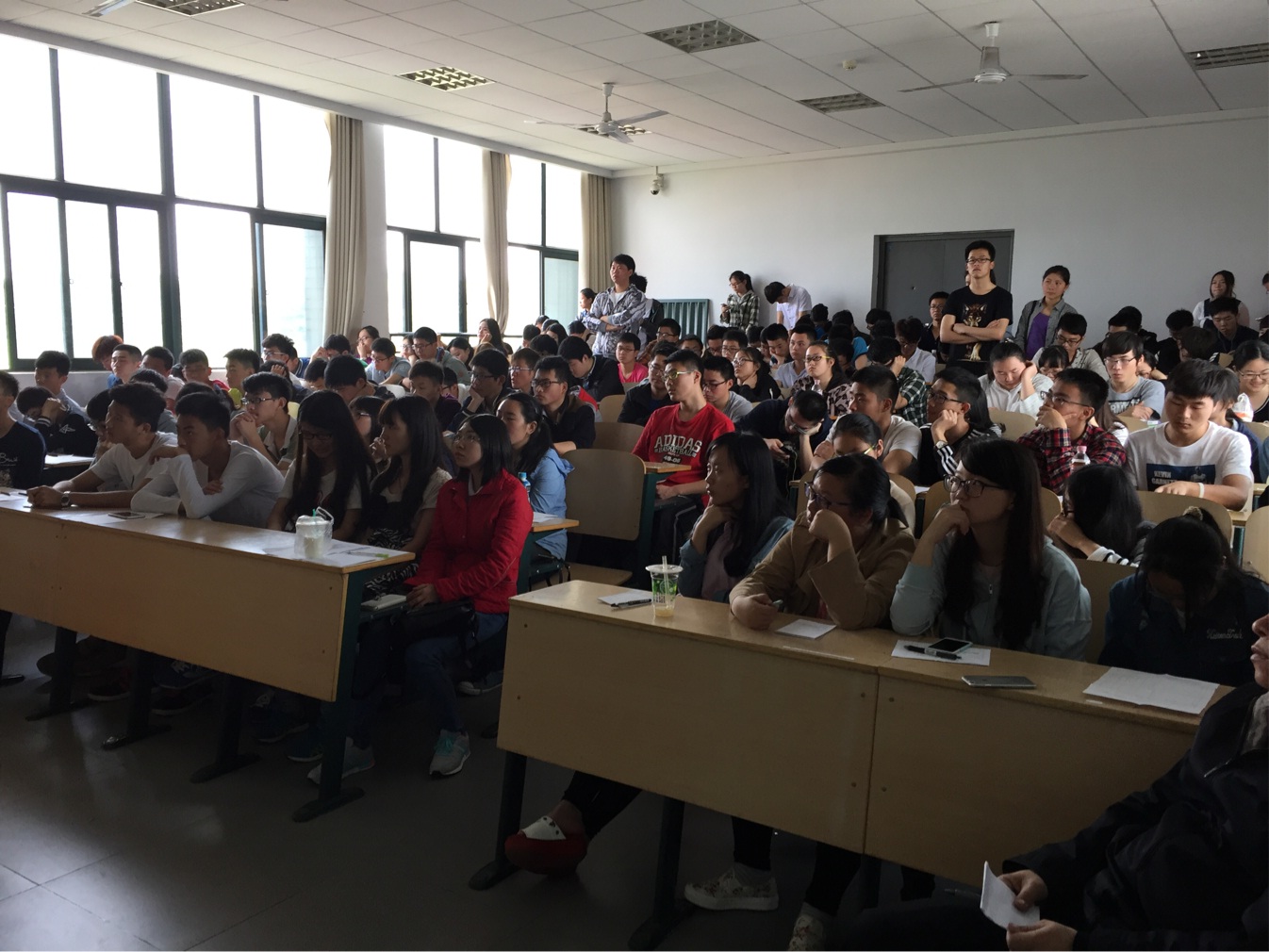 、国际学院部分师生共计150余人聆听了报告。金放院长对Emery教授进行了简要介绍,并对其到来表示热烈欢迎。Emery教授以给同学们讲述他的家庭为开场白,向同学们介绍了化学工程的前景、人们对化工工业的误解,引起同学们的深思。接着,Emery教授以其亲身经历幽默风趣地向同学们讲述了上大学的重要意义,强调学习能够改变命运,鼓励同学们好好学习。最后,Emery教授向同学们简要介绍了加拿大的部分高校及教育体制,并真诚地希望同学们去国外继续深造,为将来走向社会奠定坚实的基础。