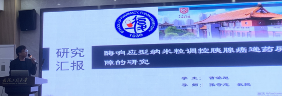 曹锦旭从酶响应型纳米粒调控胰腺癌递药屏障的研究为出发点,将学术报告总体分为两个部分来讲述。第一个部分从:1.TM33-GON/TNA纳米粒的制备和表征;2.TM33-GON/TNA的体内递送考察;3.TM33-GON/TNA体内调控血管屏障的考察;4.TM33-GON/TNA联合Nab-PTX的体内药效学评价;5.TM33-GON/TNA的体内安全性的初步评价等五个方面介绍了酶响应型纳米粒的调控机制。第二个部分从“可序贯突破血管和基质的纳米粒RFC-GON/ATRA调控胰腺癌基质微环境的研究”展开讲解,总共包含四个方面:1.RFC-GON/ATRA纳米粒的制备和表征;2. RFC-GON/ATRA体外递送效率及调控效果评价;3. RFC-GON/ATRA体内递送效率及调控效果评价;4. RFC-GON/ATRA联合DOX-Lip的体内药效学评价。两个部分讲解细致入微,引起同学们认真思考,认真求学的浓厚氛围。