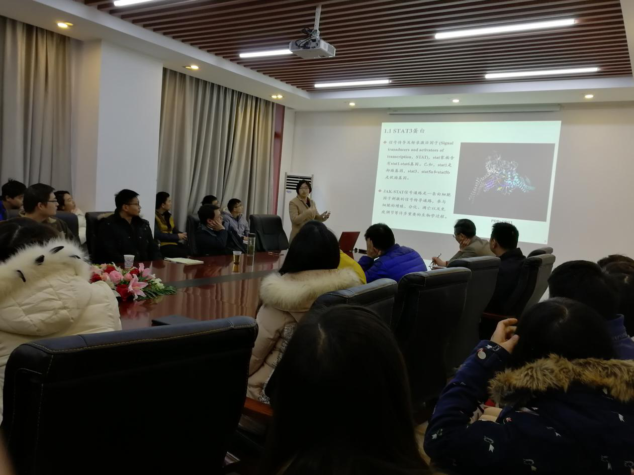 师生做主题为“靶向STAT3蛋白的抗肿瘤抑制剂的设计和发现”的学术报告。报告会由副院长龙思会主持,学院老师和研究生聆听了本场学术报告。