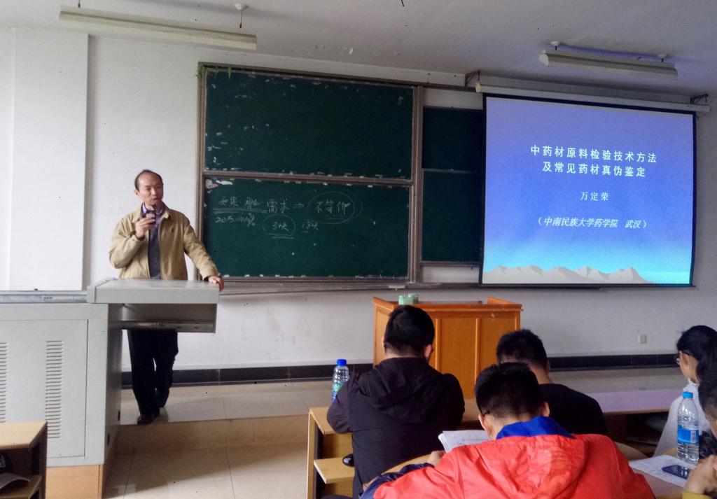 的邀请,中南民族大学药学院万定荣教授在流芳校区一教楼L1207教室做了一场题为“中药材原料检验技术方法及常见药材真伪鉴定”的学术报告。