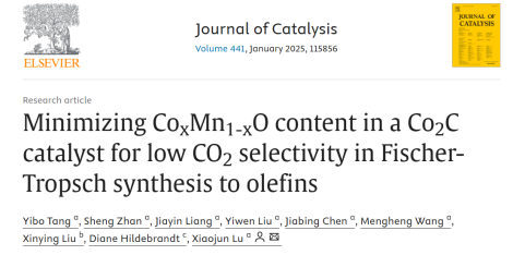 陆小军教授课题组在费托合成制烯烃领域取得进展。该研究的部分成果近日以“Minimizing CoxMn1-xO content in a Co2C catalyst for low CO2 selectivity in Fischer-Tropsch synthesis to olefins”为题在催化领域权威期刊《Journal of Catalysis》上发表。电影天堂