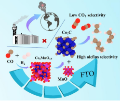 该研究突破了Co基费托合成制烯烃催化剂体系的高CO2选择性问题,在保持费托合成烯烃过程中烯烃高选择性的同时,将CO2选择性由常见的约40%降低至约5%,极大地提高了合成气转化的碳效率,并明确了控制该催化剂体系中CO2选择性的机制。该研究发现对于高性能新型费托合成催化剂的设计制备提供了新的思路,展现出很好的工业应用前景。该研究得到了科技部政府间国际科技创新合作重点专项(2022YFE0101800)和国家自然科学基金(22202165)等项目的支持。